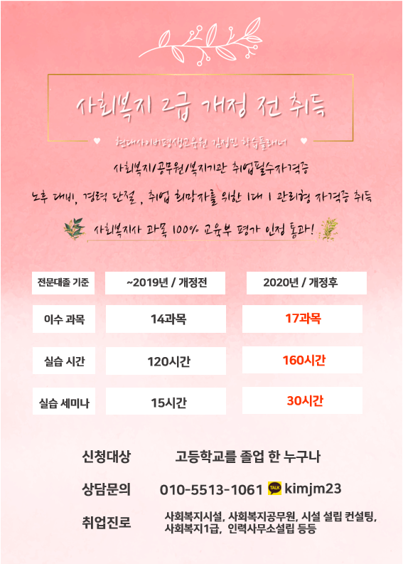 궁금하신 점과 사회복지2급 취득 관련 문의 사항은