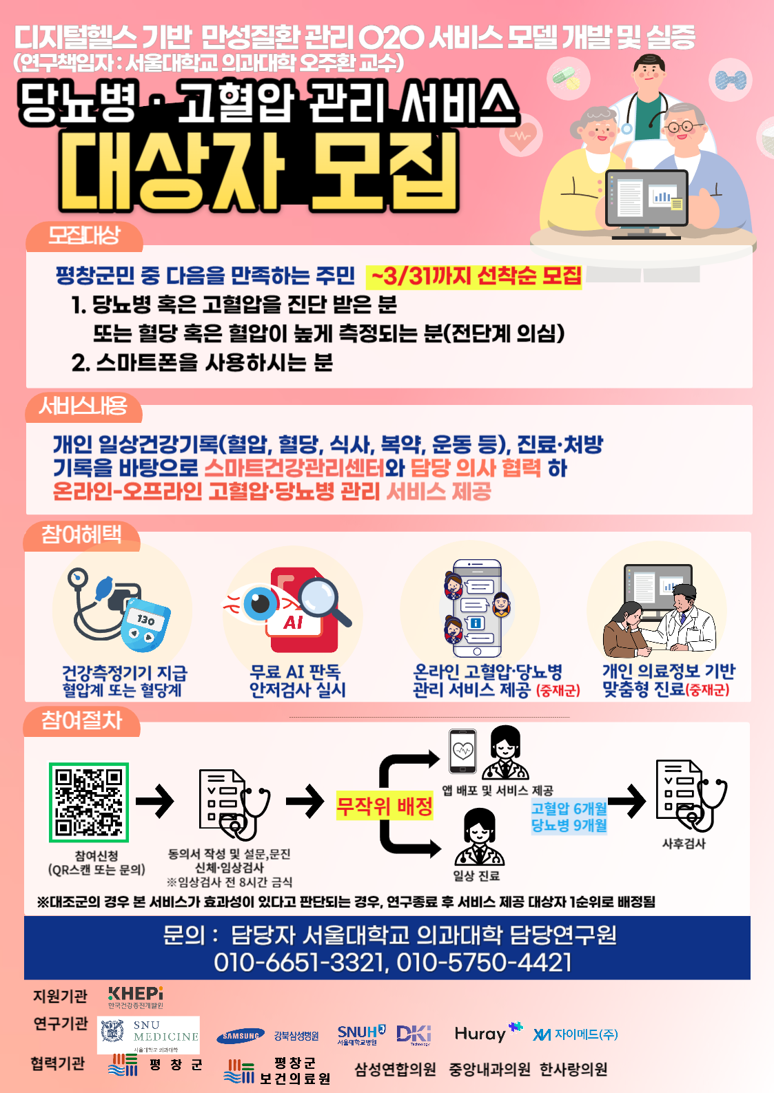서울대학교병원에서 주관하는 디지털 헬스 기반 만성질환 관리 서비스를 진행하고 있습니다.