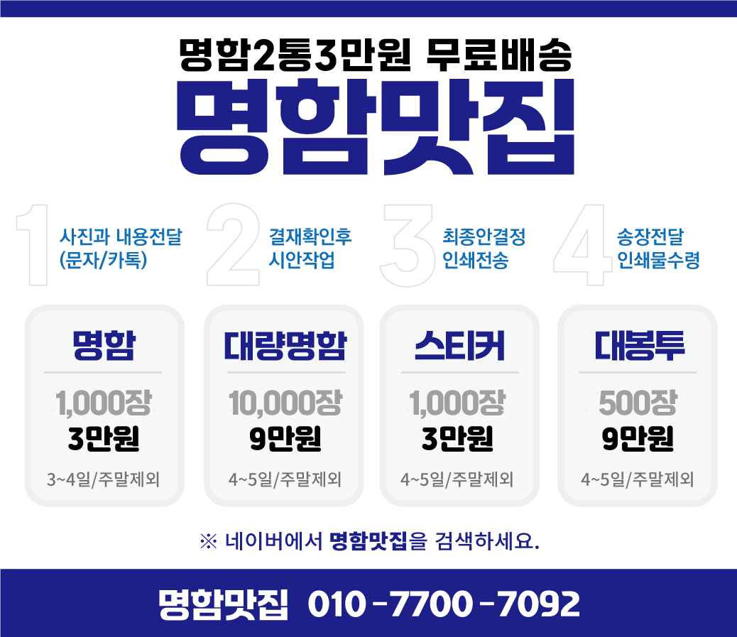 네이버쇼핑몰(명함맛집)에서 주문하셔도 됩니다.