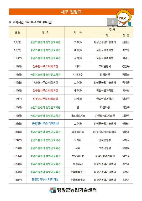 희망농업인께서는 교육일정을 확인하시어 많은 참여 바랍니다.^^