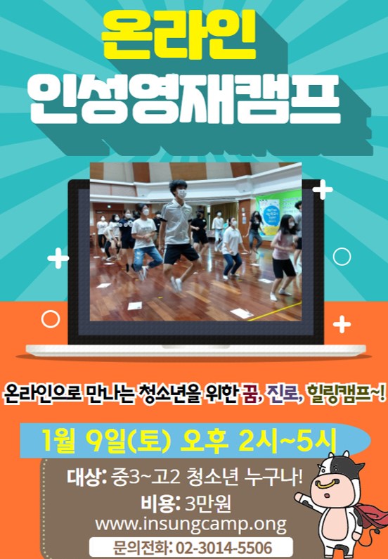 청소년의 꿈과 진로를 위한 가치있는 선물! 1월 9일(토) 온라인 인성영재캠프