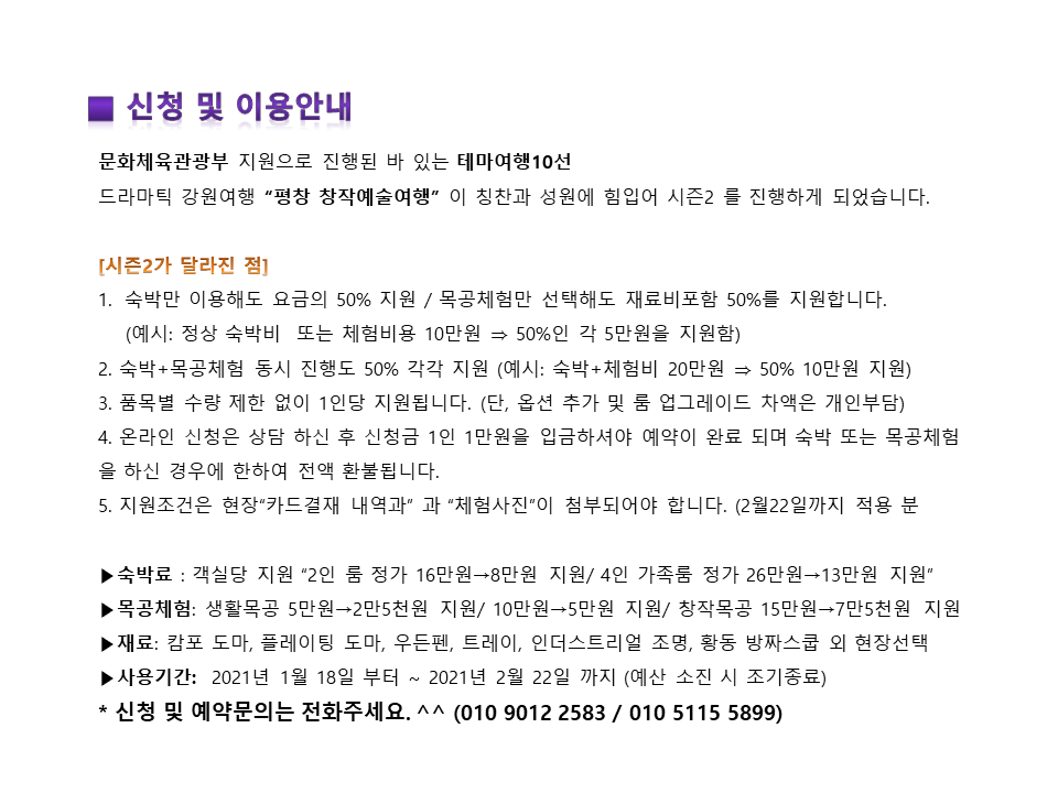 드라마틱 강원여행 “평창 창작예술여행” 이 많은 분들의 칭찬과 성원에 힘입어