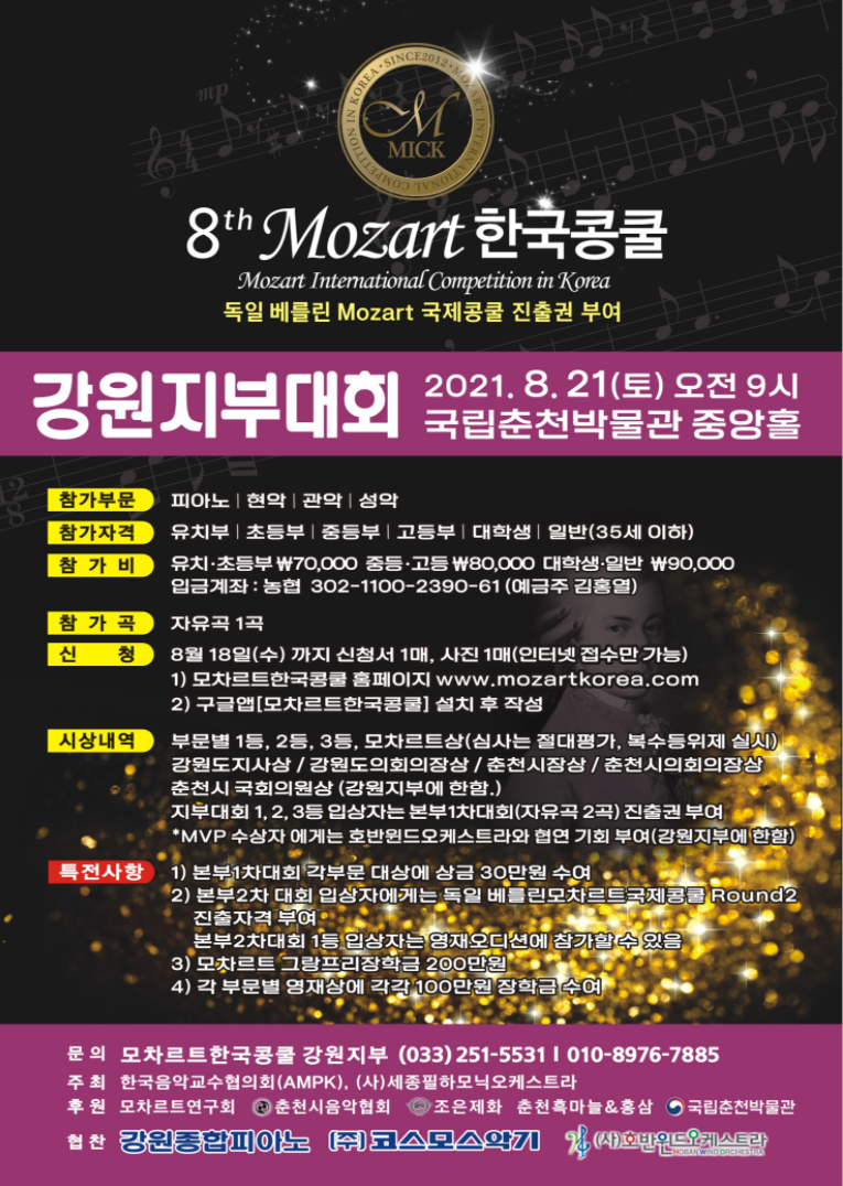 제8회 모짜르트 한국콩쿨 강원지부대회 개최