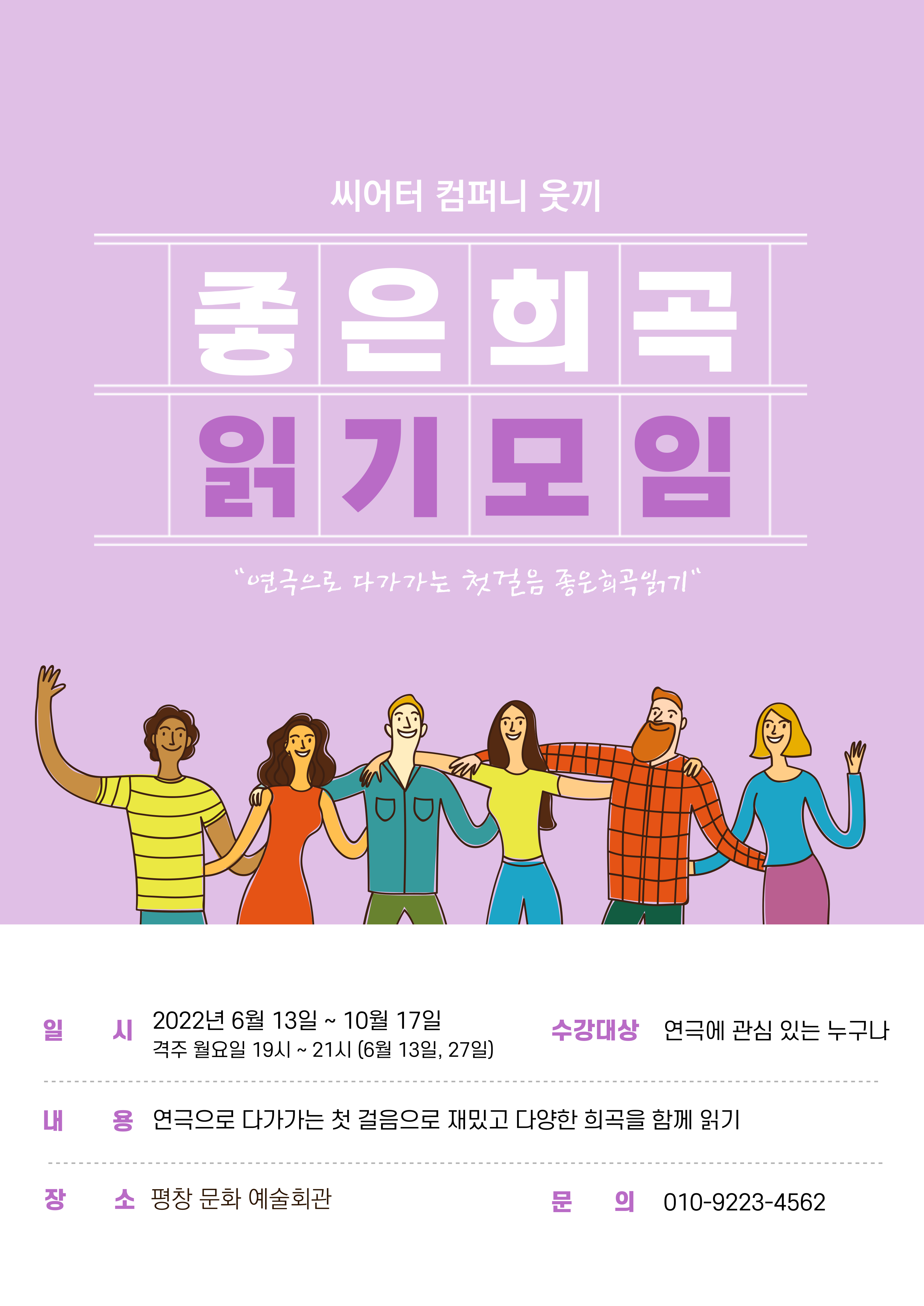- 연극으로 다가가는 첫 걸음으로 재밌고 다양한 희곡을 함께 읽으면서 연극에 대한 관심을 높여 평창에 자생적 연극동아리를 만들고자 합니다.