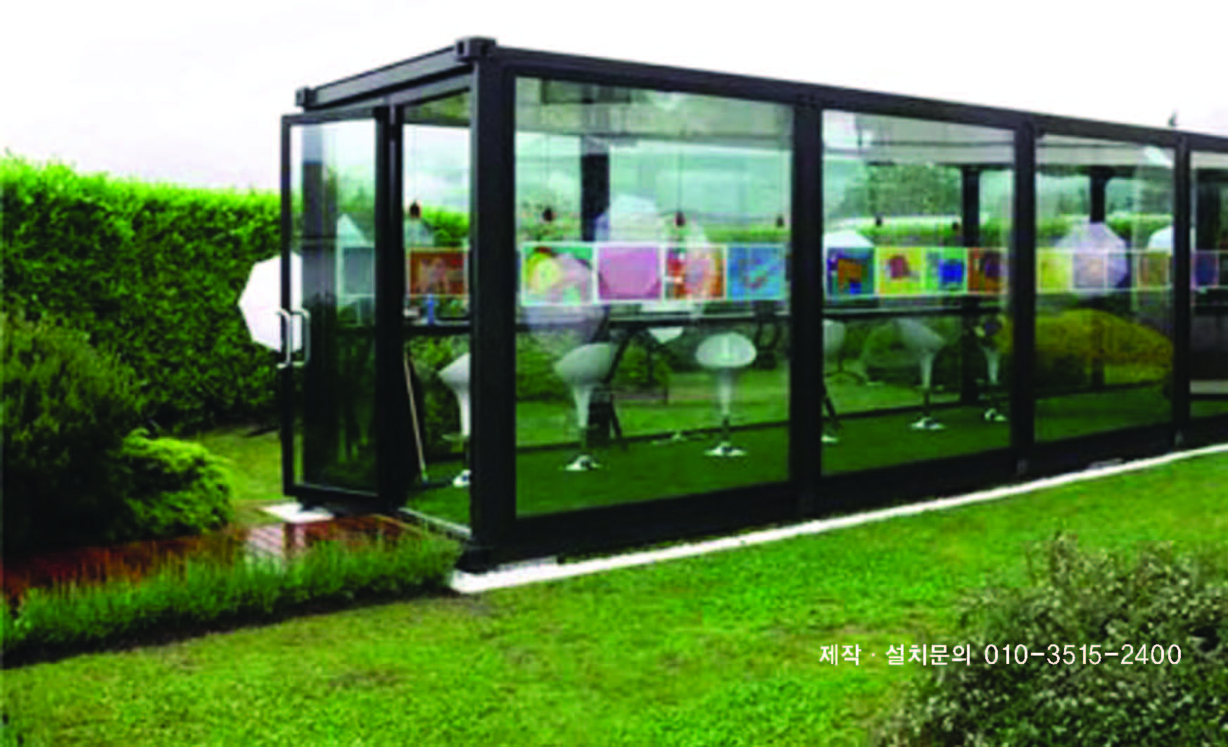 사용자 환경에 따라 유리, 방음 단열 샌드위치 판넬, 하이샷시, 황토벽돌 등 다양한 벽 면 소재를 사용할 수 있습니다.