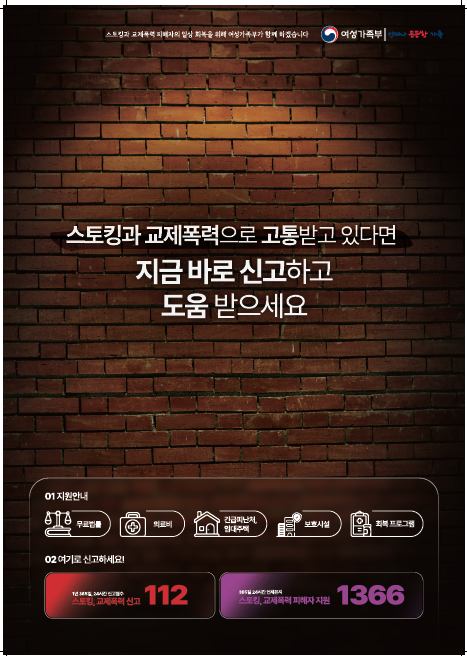 여성가족부와 강원특별자치도가 함께하는 스토킹•교제폭력 예방 홍보 포스터를 첨부합니다.