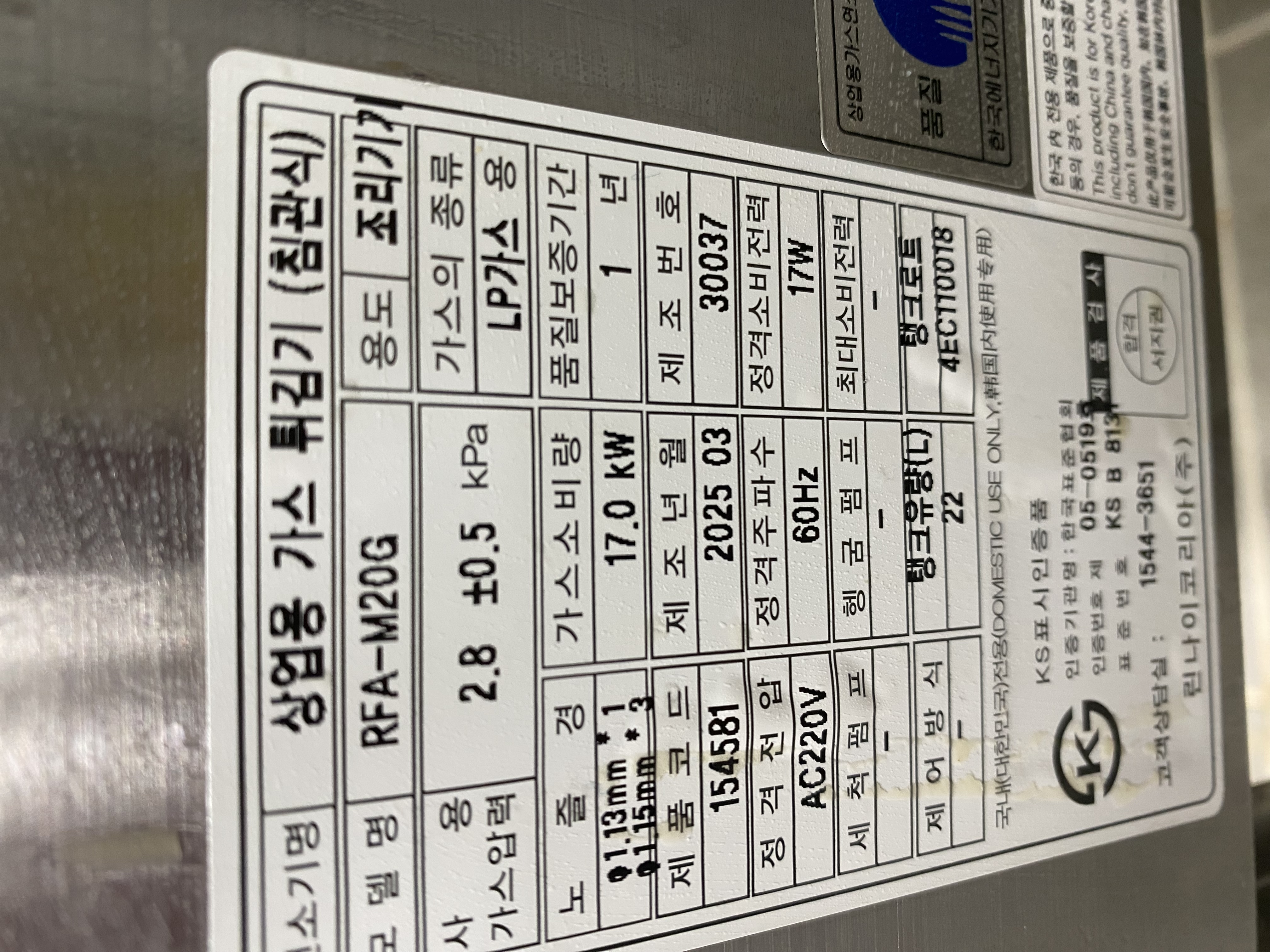 구매할때, 가스튀김기가 전기튀김기에 비해 효율이 좋다고 안내받았습니다.