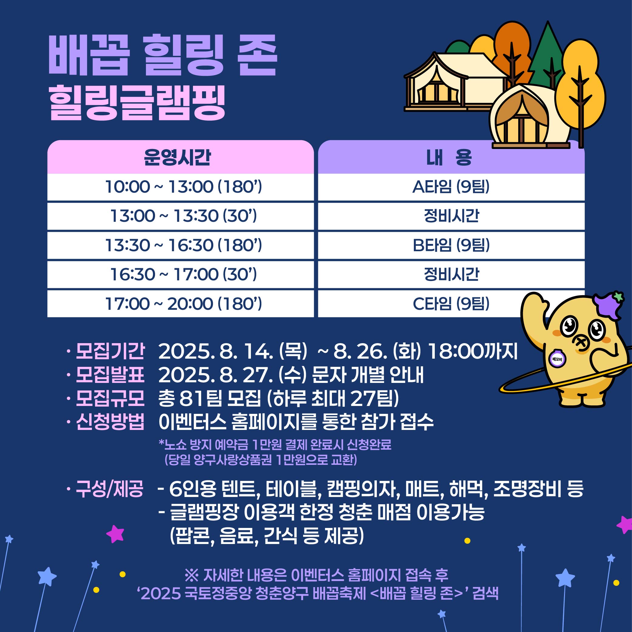 - 모집규모 : 총 81팀 모집 (하루 최대 27팀)