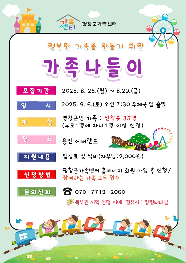 평창군가족센터-행복한 가족을 만들기 위한 "가족나들이" -모집마감-