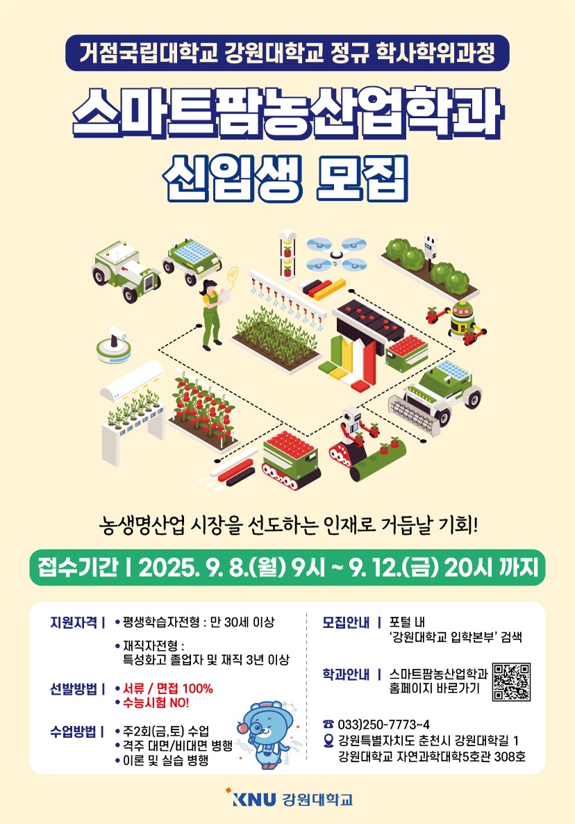 [강원대학교 스마트팜농산업학과 2026학년도 신입생 모집]