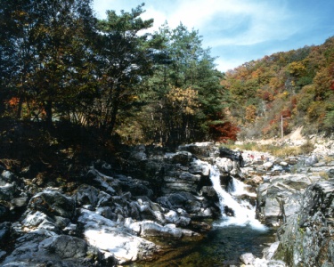 기암괴석으로 이루어진 맑은 계곡을 배경으로 한 허브나라 역시 이제는 평창군의 명소이다.