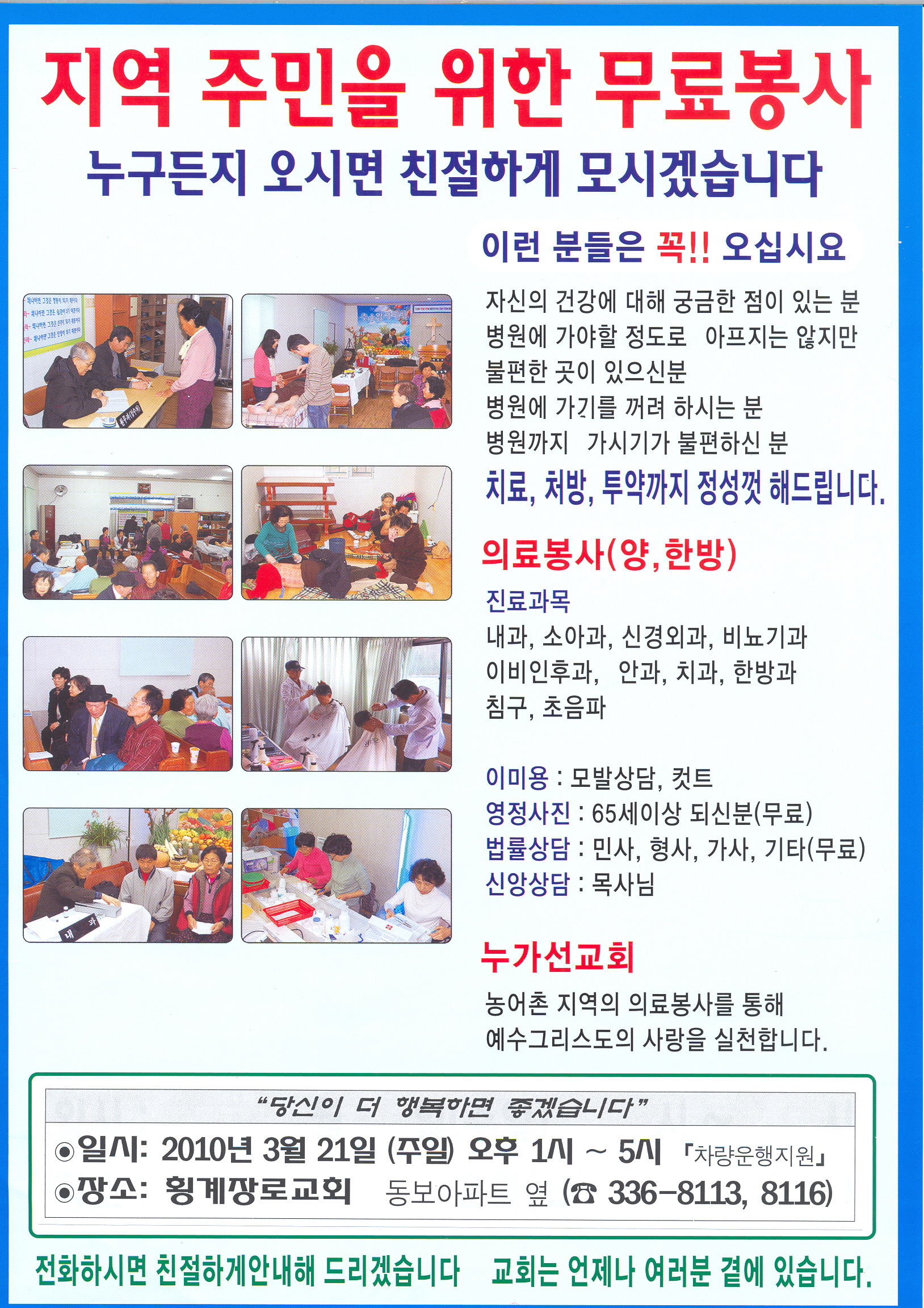 O 의료봉사 (양,한방) : 내과,소아과,신경외과,비뇨기과,이비인후과,안과,치과,한방과,침구,초음파