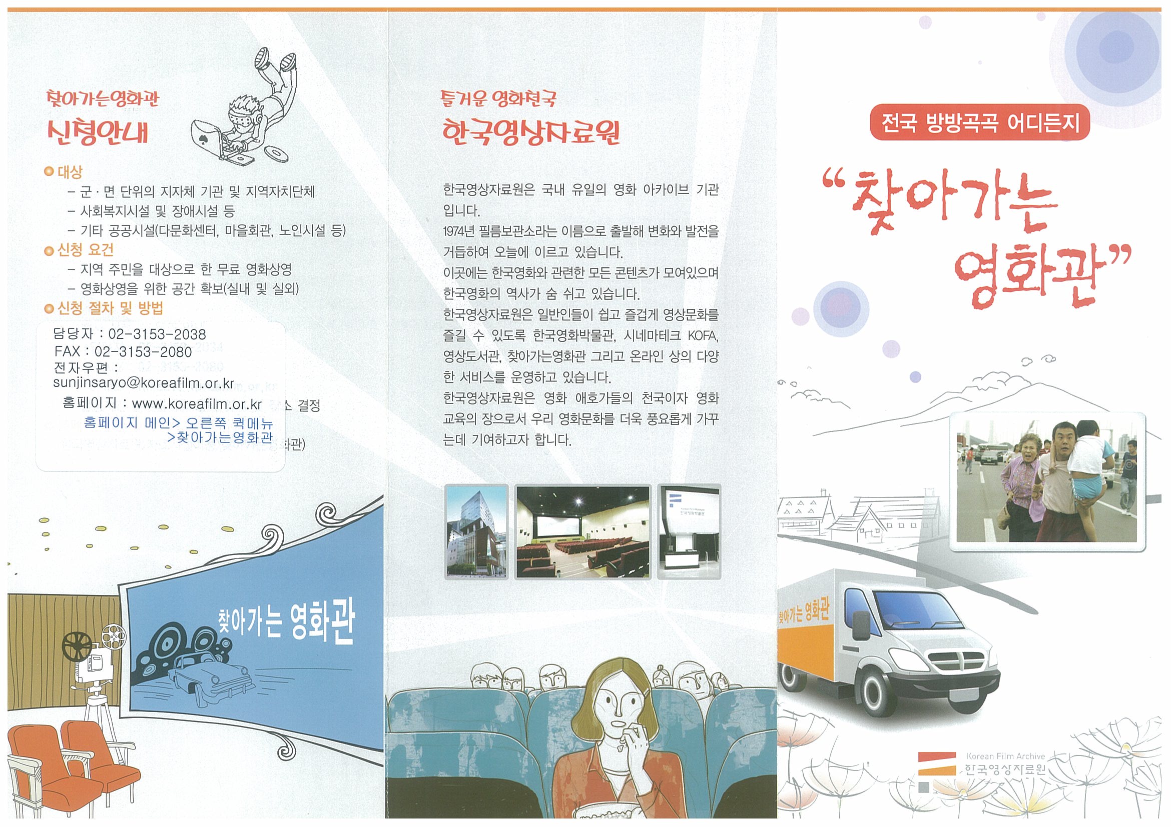 - 홈페이지 : www.koreafilm.or.kr (메인화면 오른쪽 퀵메뉴-찾아가는 영화관)