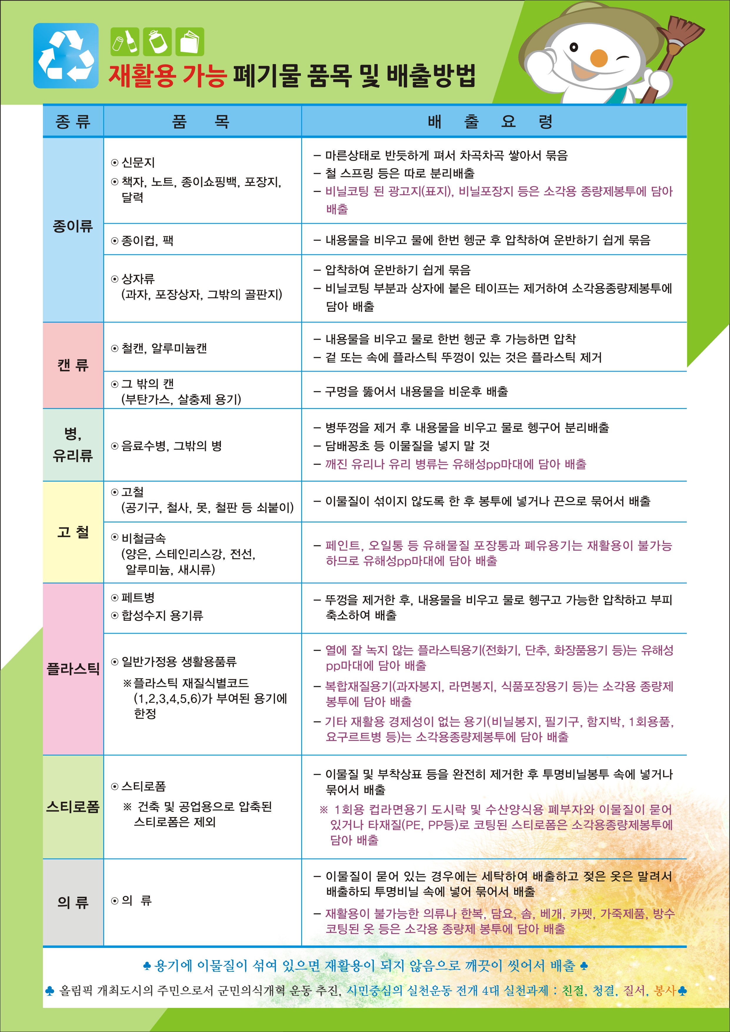 쓰레기 분리배출에 적극 협조하여 주시는 주민들께 감사드리며