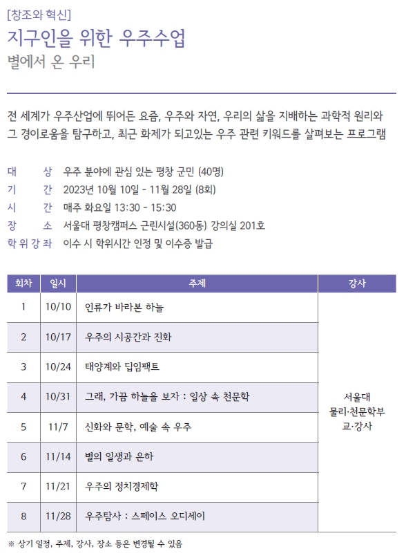 ※ 학위과정은 강의 당일 서울대 평창캠퍼스에서 추가접수 가능 (비학위과정은 현장접수 불가)