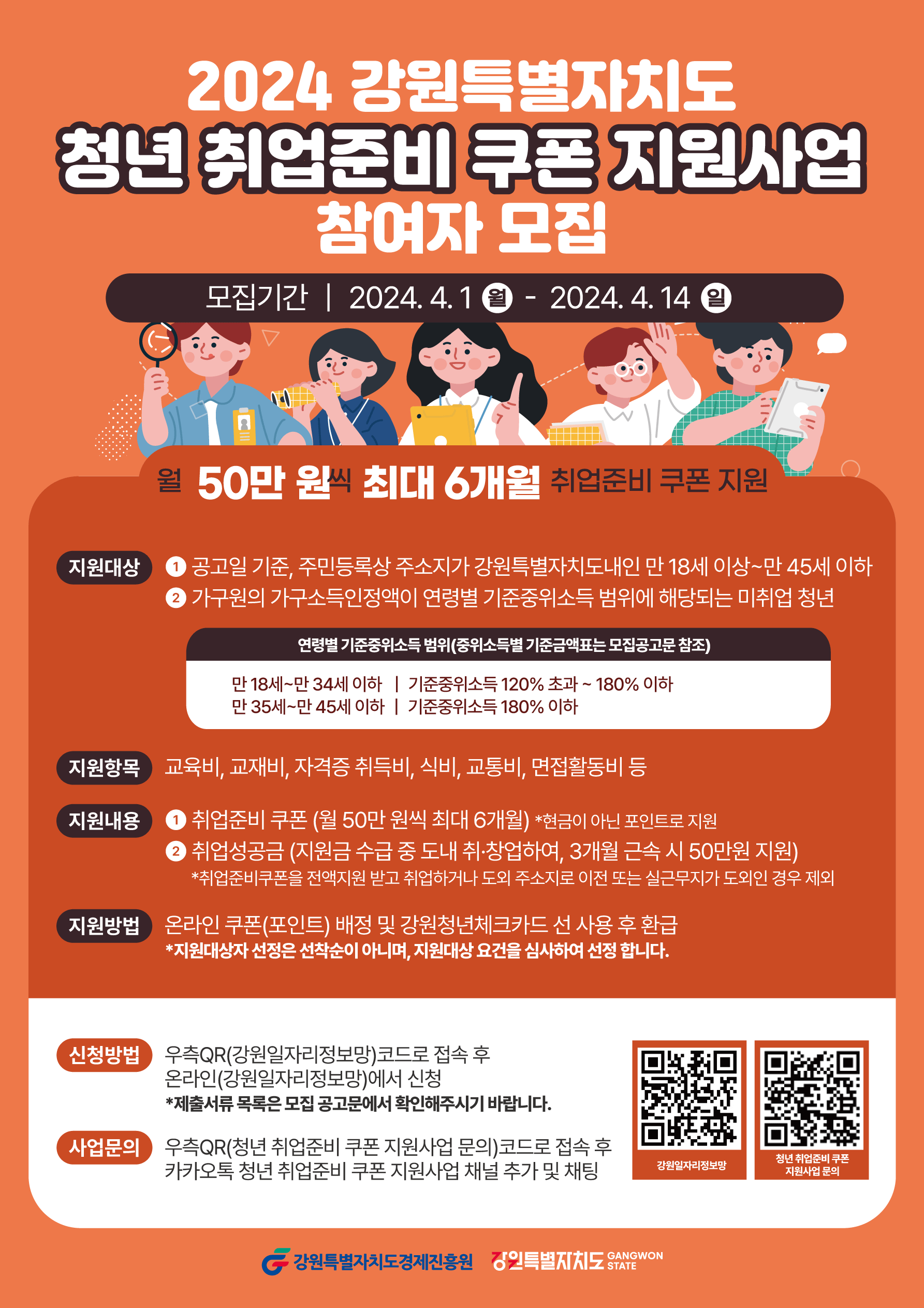 2024년 강원특별자치도 청년 취업준비 쿠포 지원사업 안내