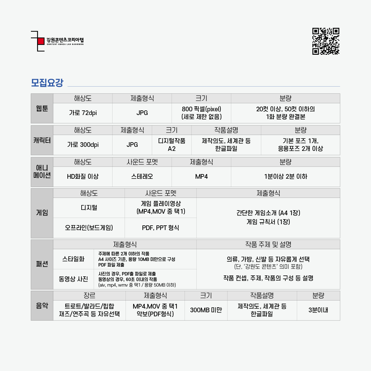 · 공모분야 : 웹툰, 캐릭터, 애니메이션, 게임, 패션, 음악