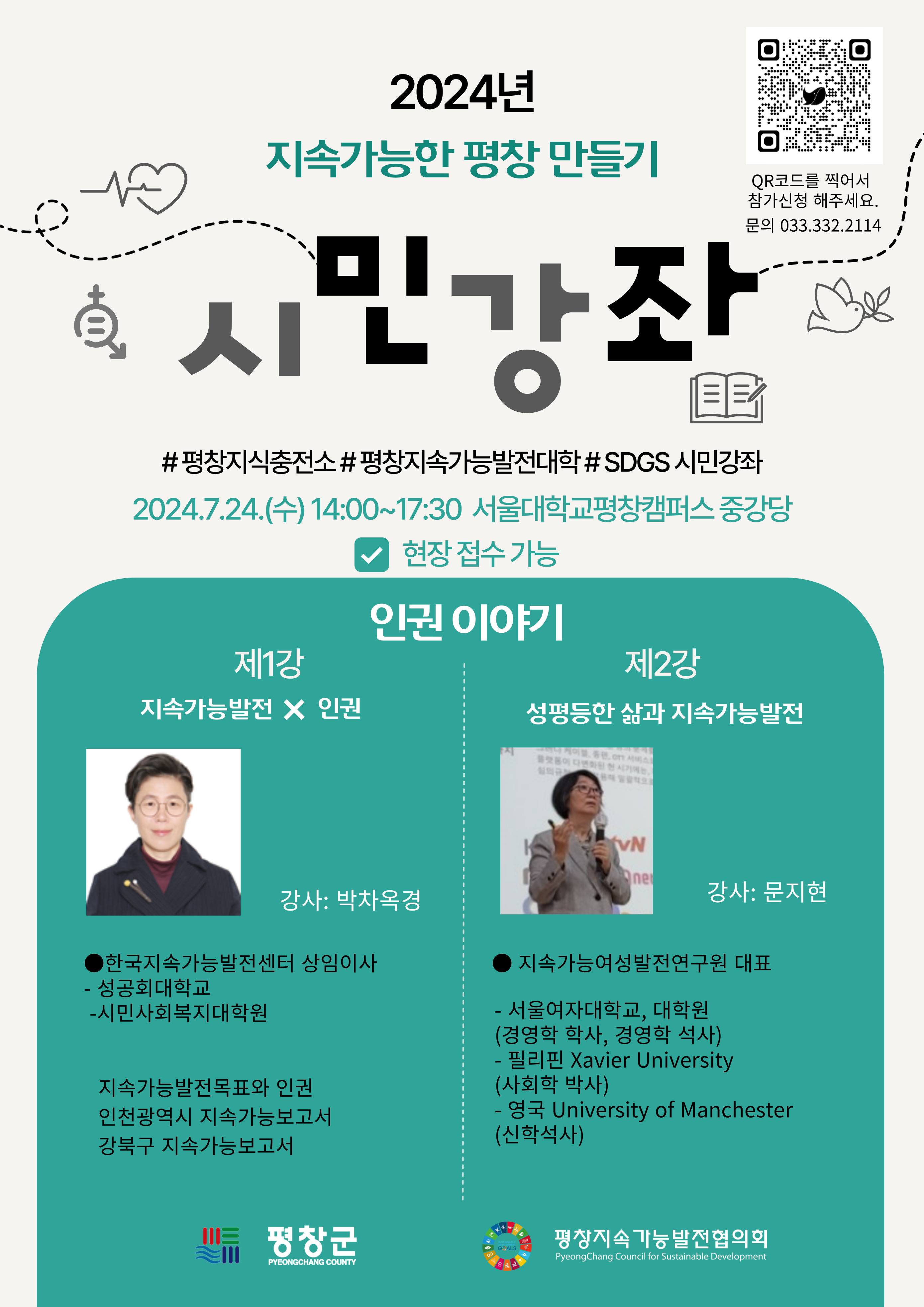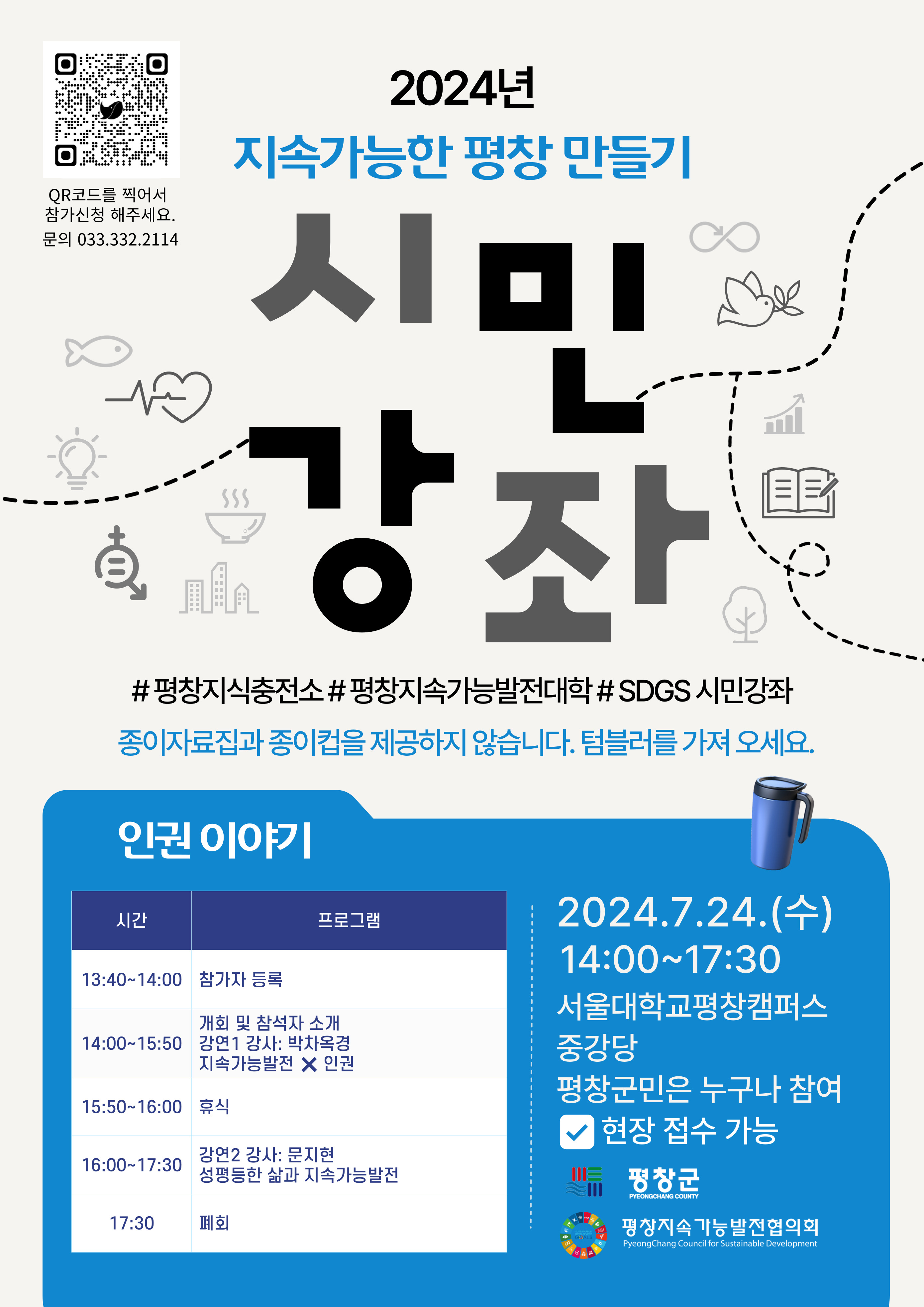 평창군민이면 누구나 신청할 수 있는 시민강좌를 개최합니다.