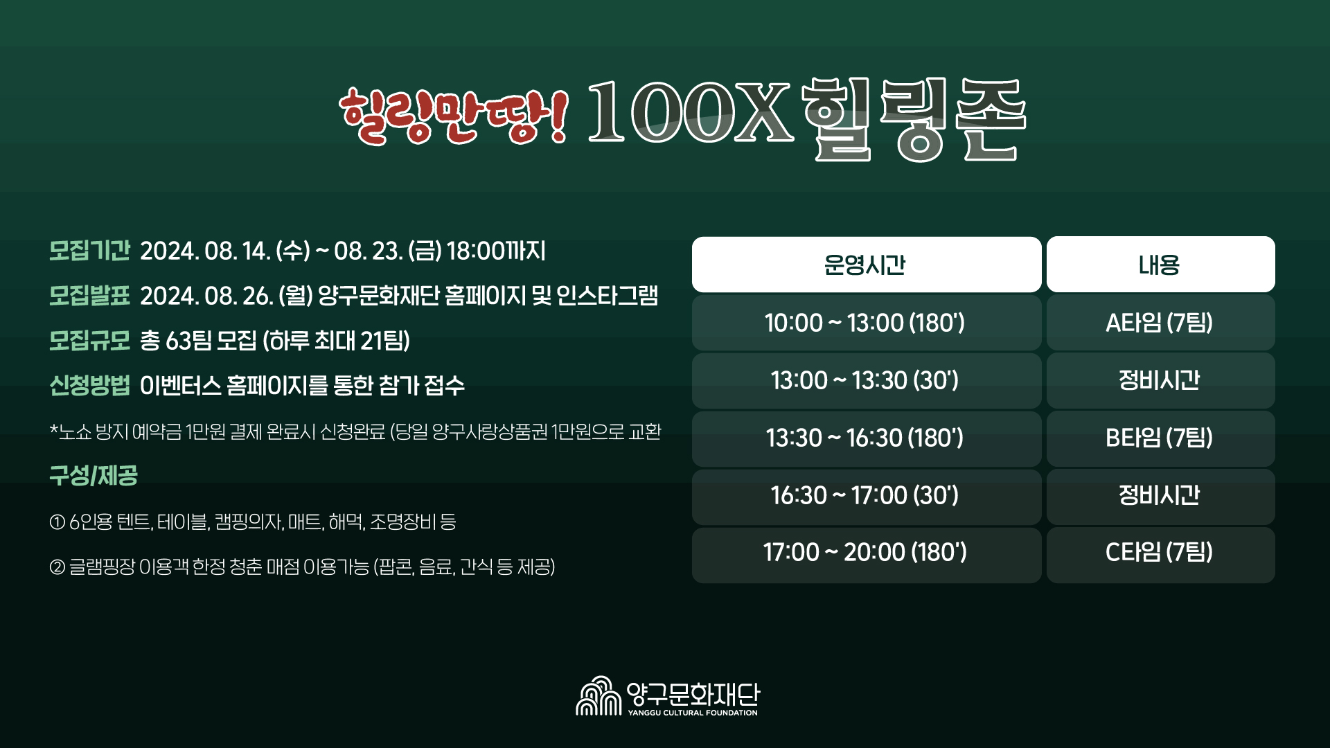 <힐링만땅! 100X힐링존>은 2024 국토정중앙 청춘양구 배꼽축제의 프로그램 일환으로,