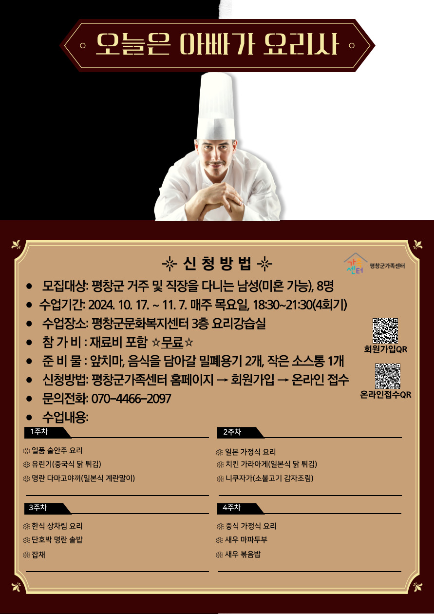 6. 신청방법: 평창군가족센터 홈페이지 → 회원가입 → 온라인 접수
