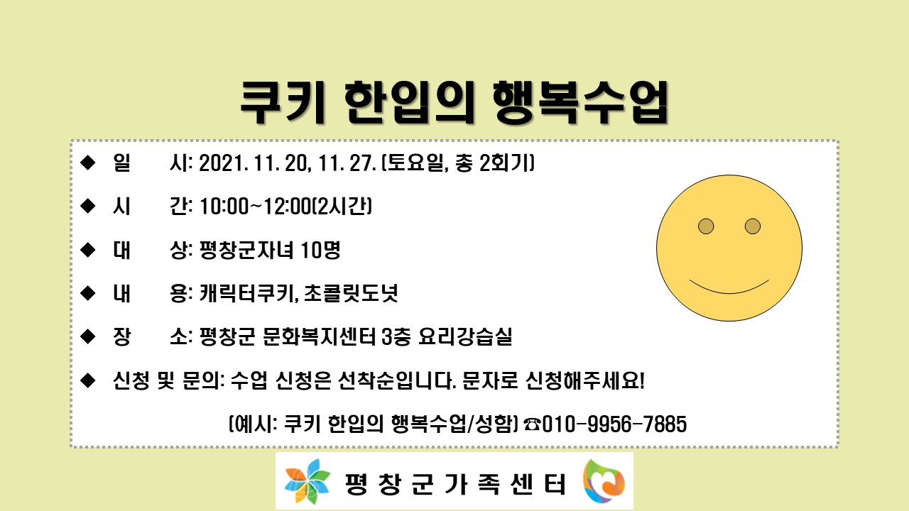 쿠키 한입의 행복수업 대상자 모집(마감)