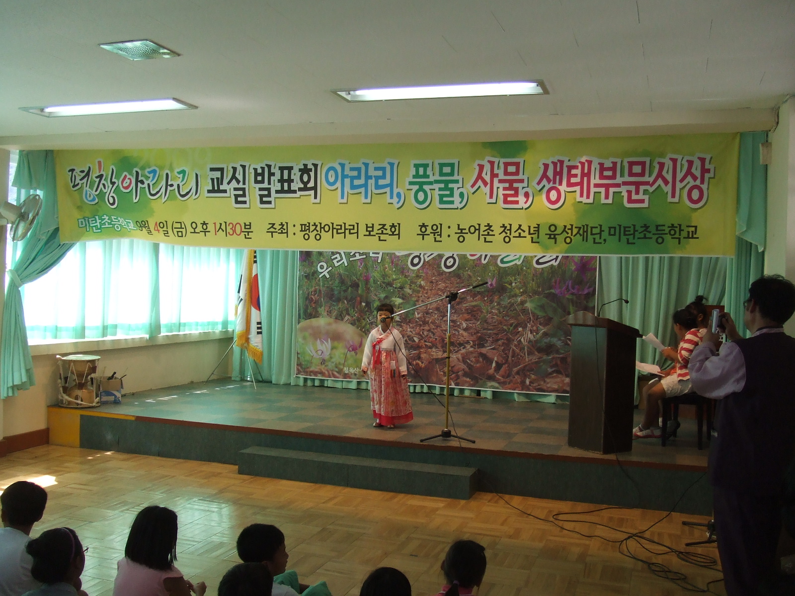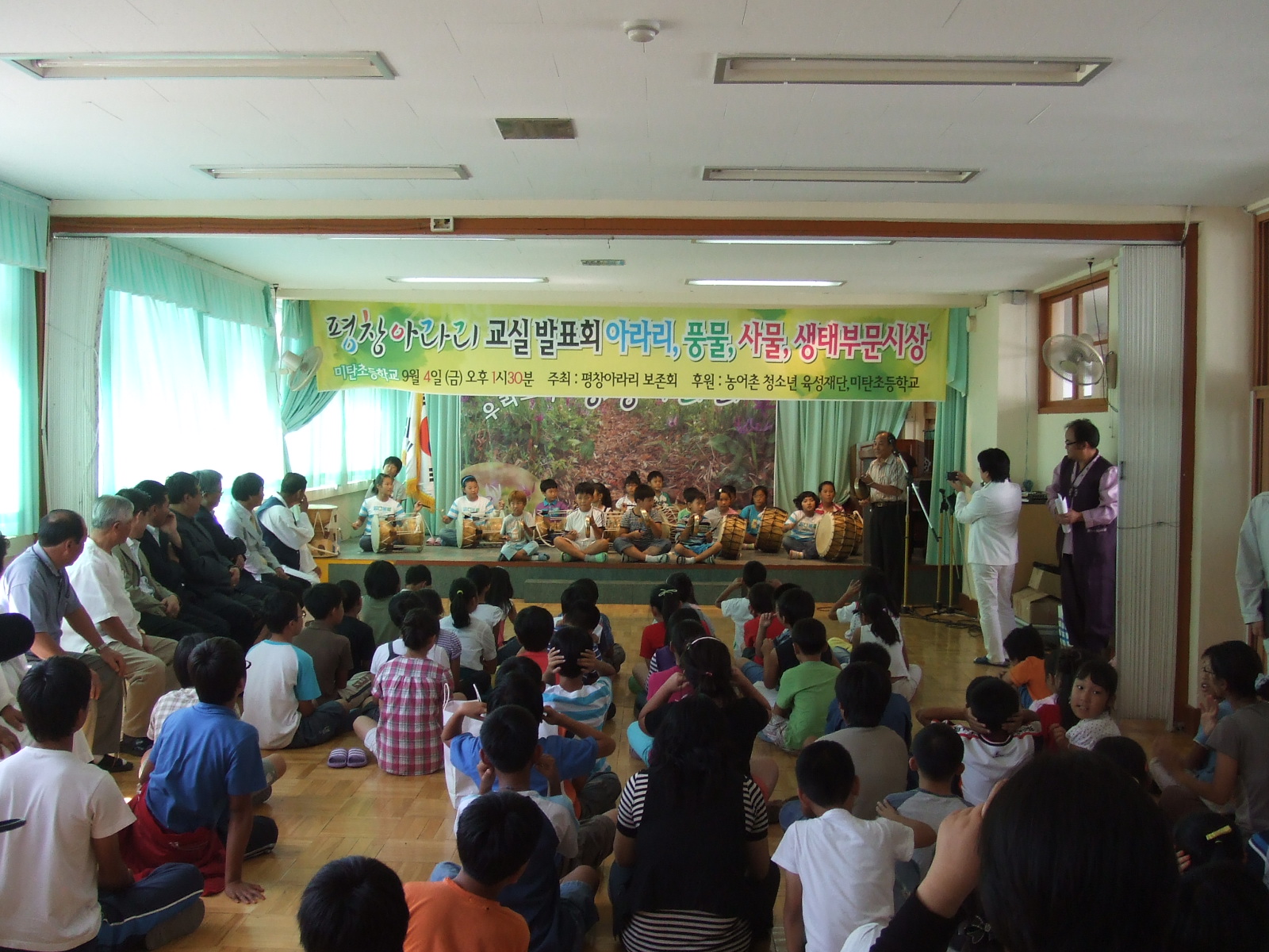 지난 8월 5일부터 실시한 ‘2009 평창아라리 교실’에 참가한 학생들이 한 달 동안 배운 ‘평창아라리’와 ‘풍물’ 실력을 선보여 관람객들로부터 많은 격려와 박수를 받았습니다.