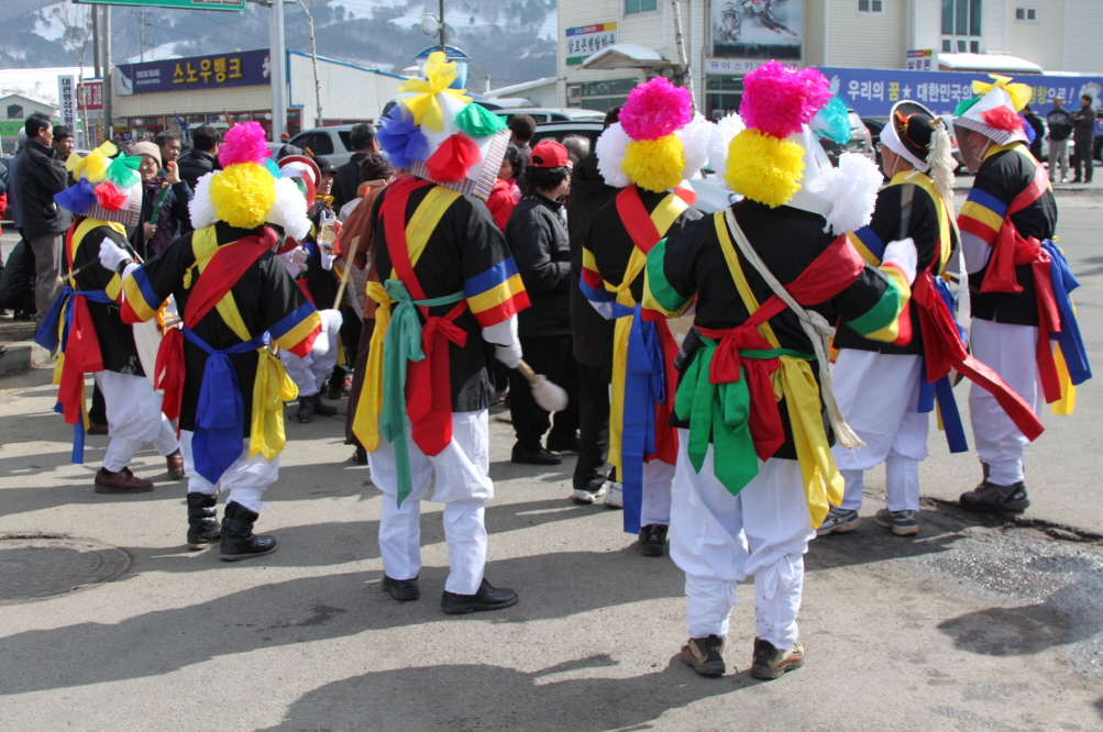 실사를 마치고 가는 실사단 일행을 환송하는 진부면 사람들