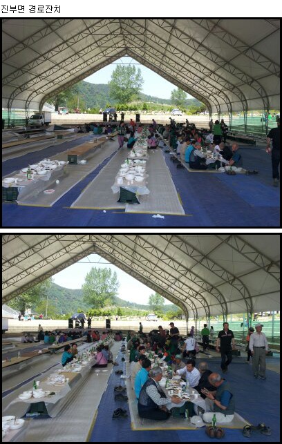 월정사가 지원한 후원금으로 진부면 남녀새마을협의회가 마련한 진부면경로잔치가 오늘 21일 진부체육공원에서 마을 어르신 1,000여명이 참석한 가운데 열렸다.