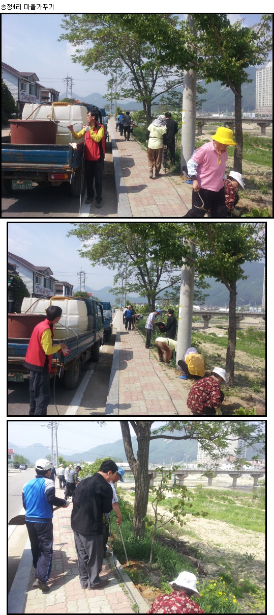 5월 25일 진부면 송정4리 마을 주민들 50여명이 택지 앞 오대천변 1km (송정4리 경계선)에 경관조성용 해바라기 2,000포기를 식재했다.