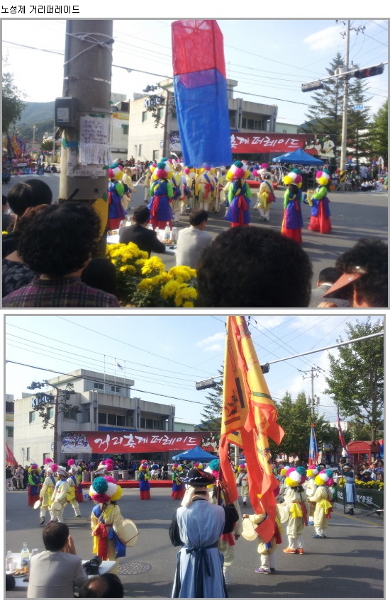 본격적인 축제에 앞서 평창읍에서는 거리퍼레이드가 있었다. 진부면을 대표해서 진부초등학교 농악부 학생들이 평소 갈고닦은 기량을 선 보였다.