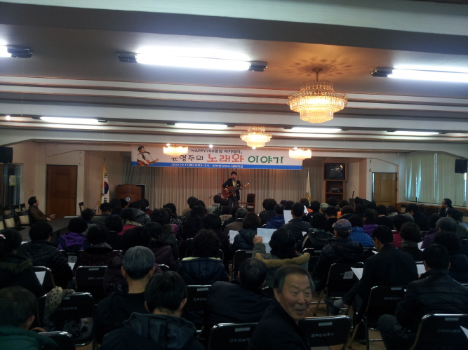 12월 11일 15시 진부면사무소에서 제143회 순회 아카데미가 있었다. 이번 아카데미에서는 가수 겸 기획자인 윤형주씨가 오셔서 2시간 동안 노래 및 자신의 인생사를 들려주었다.