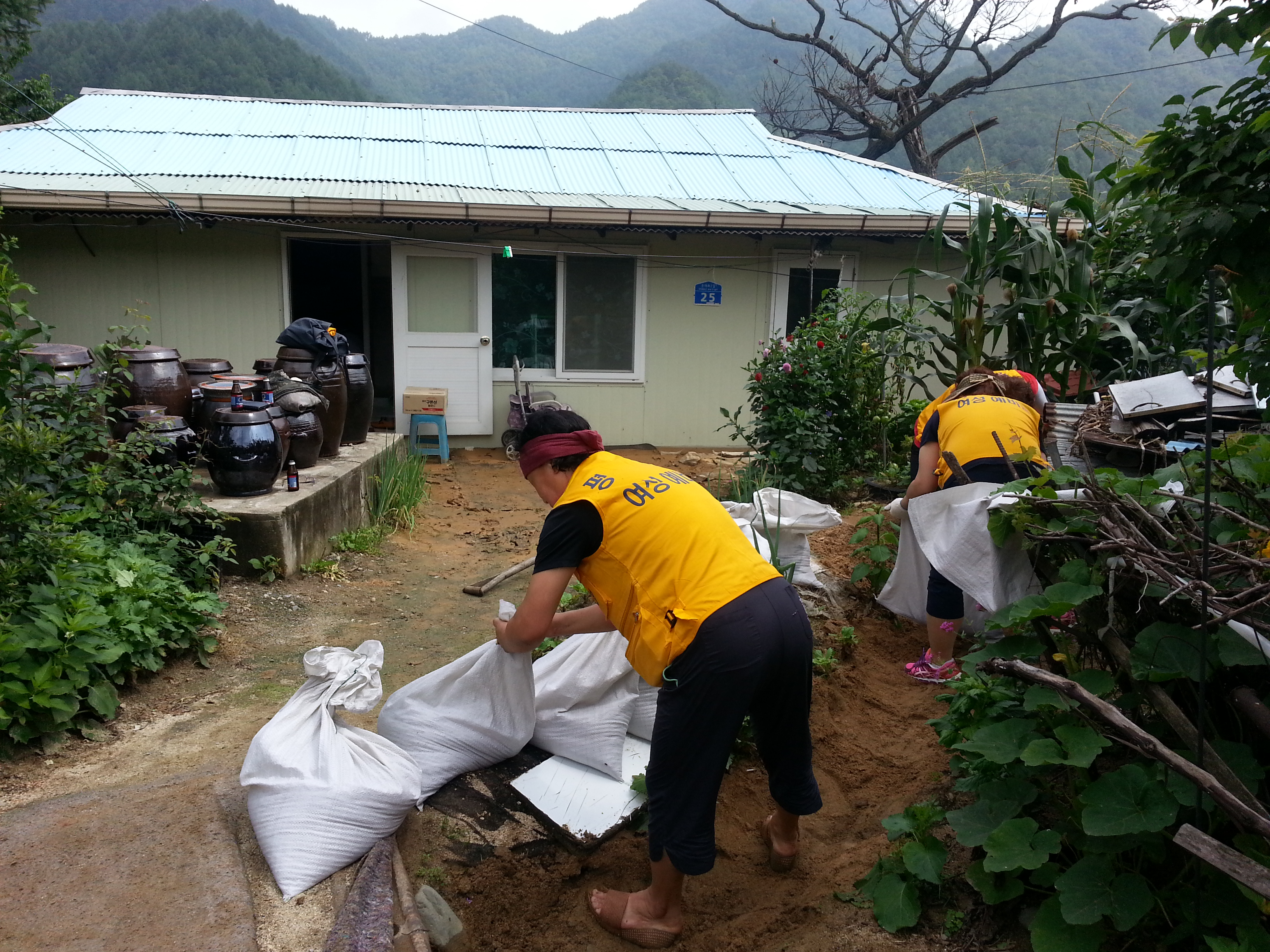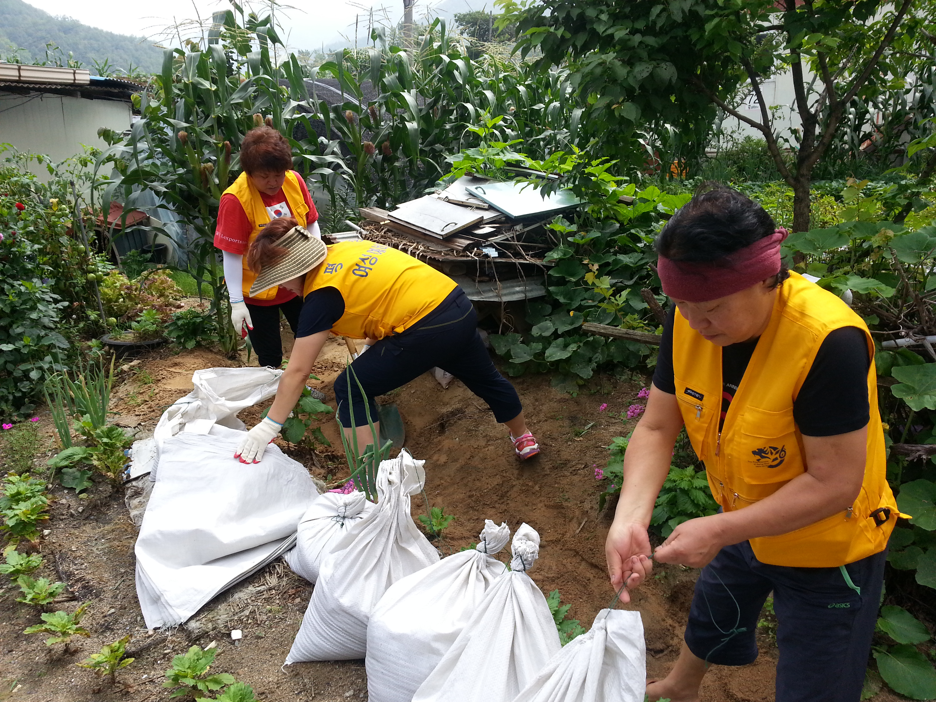 ○ 지난 (7.23) 09:00 예비군대화면대(면대장 정귀복)와 대화면여자예비군 소대(소대장 마영희)대원 10여 명은 지난 7.22 내린 비로 인해 피해를 입은 대화3리 소재 저소득 독거노인가구를 찾아 집 주변정리와 청소 등 자원봉사활동을 함.