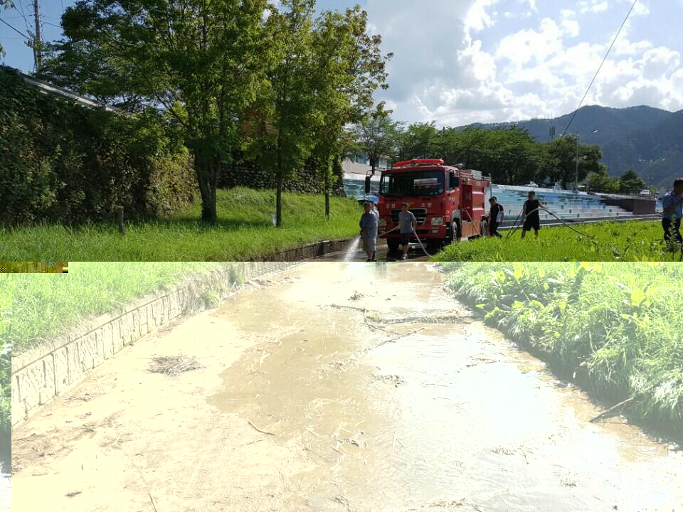 2016년 7월 8일(금) 평창읍의용소방대(대장 이기영)는 평창강변둔치에서 다가오는 휴가철을 맞아 평창읍을 방문하는 관광객을 위하여 얼마전 장마로 쌓인 쓰레기더미를 치워주셨습니다.