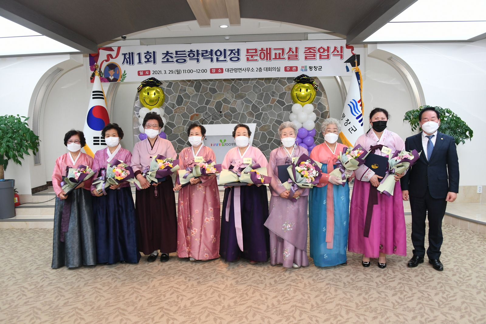 제1회 초등학력인정 문해교실(대관령도서관 인정반) 졸업식 사진입니다.