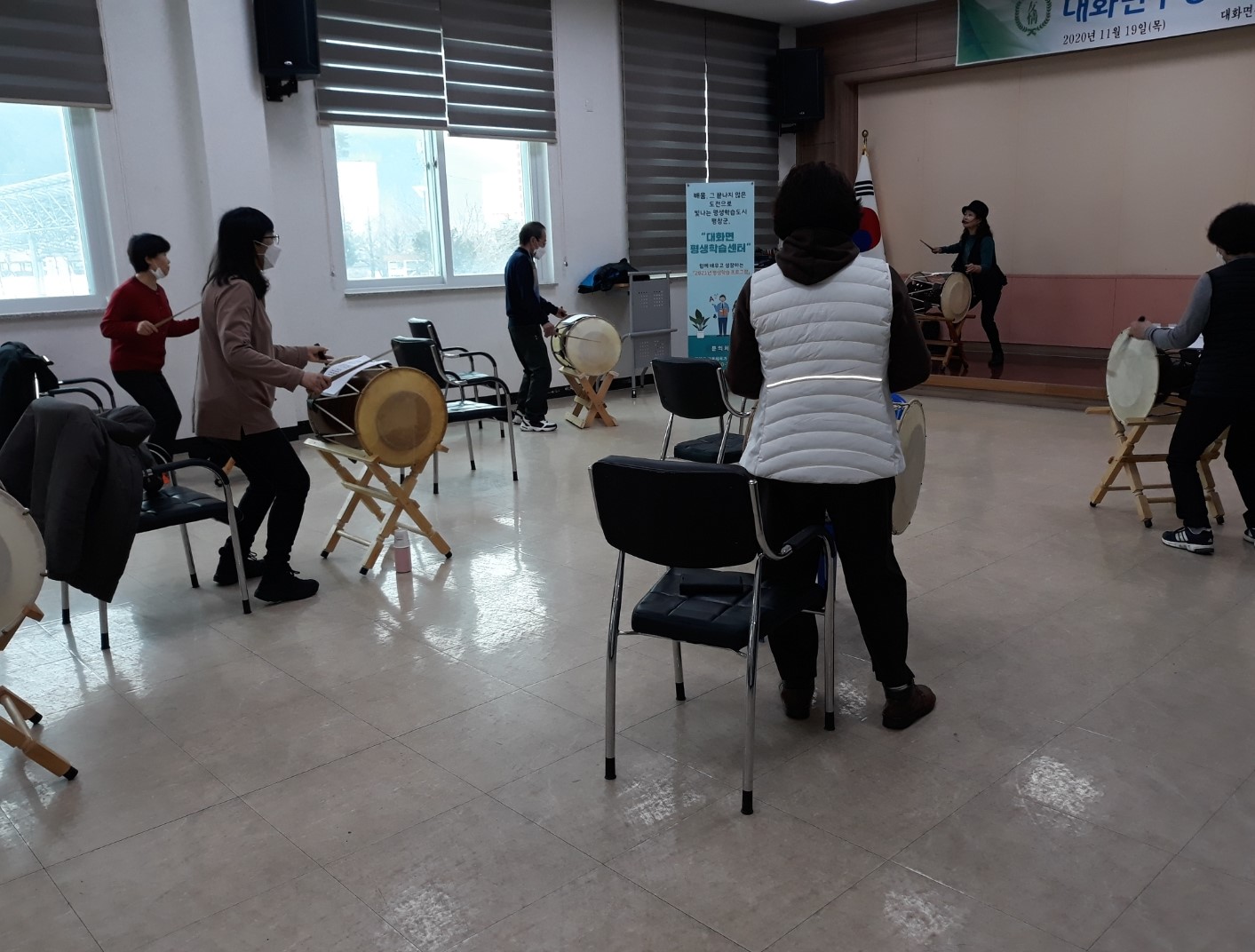 3월 대화면) 내가 만드는 풍선장식과 신바람 고고장구 수업사진입니다.