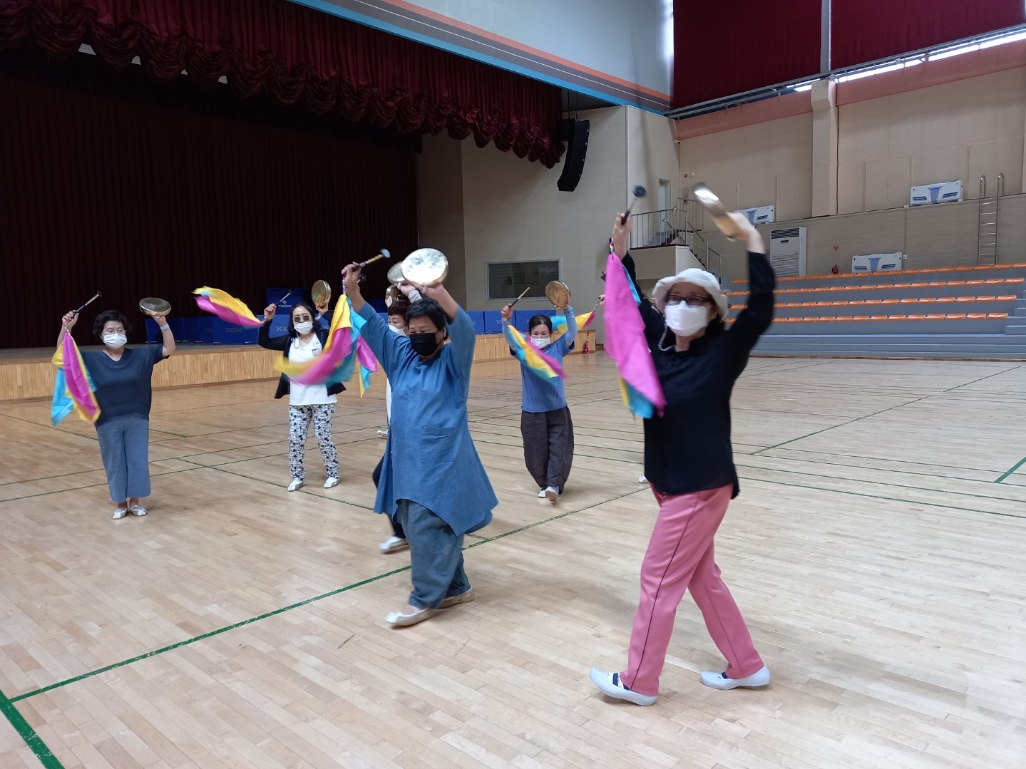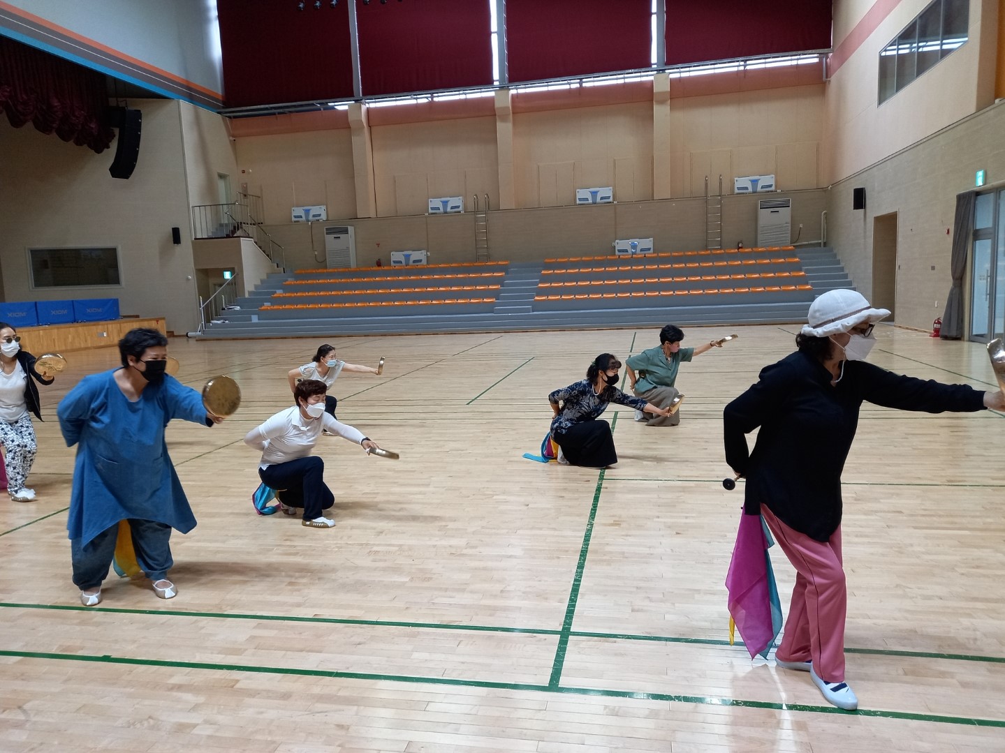 * 꽹과리를 치며 음악에 맞춰 진쇠춤을 추고 있어요~^^