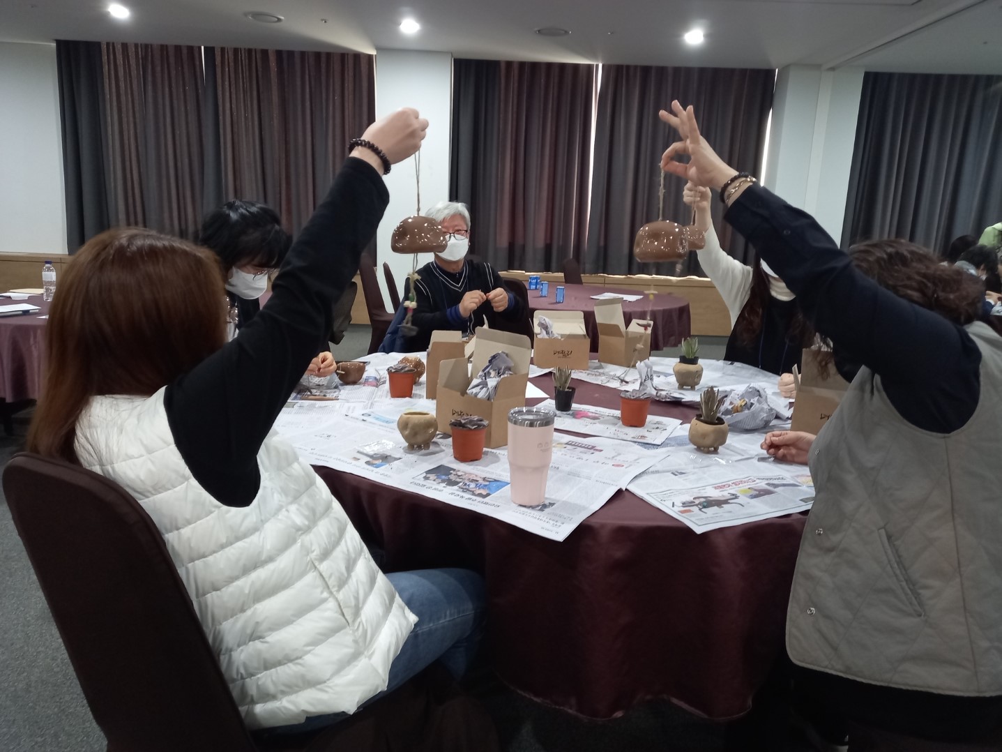 * 도자기 감자모양 풍경과 다육이 화분 만들기 체험했어요.