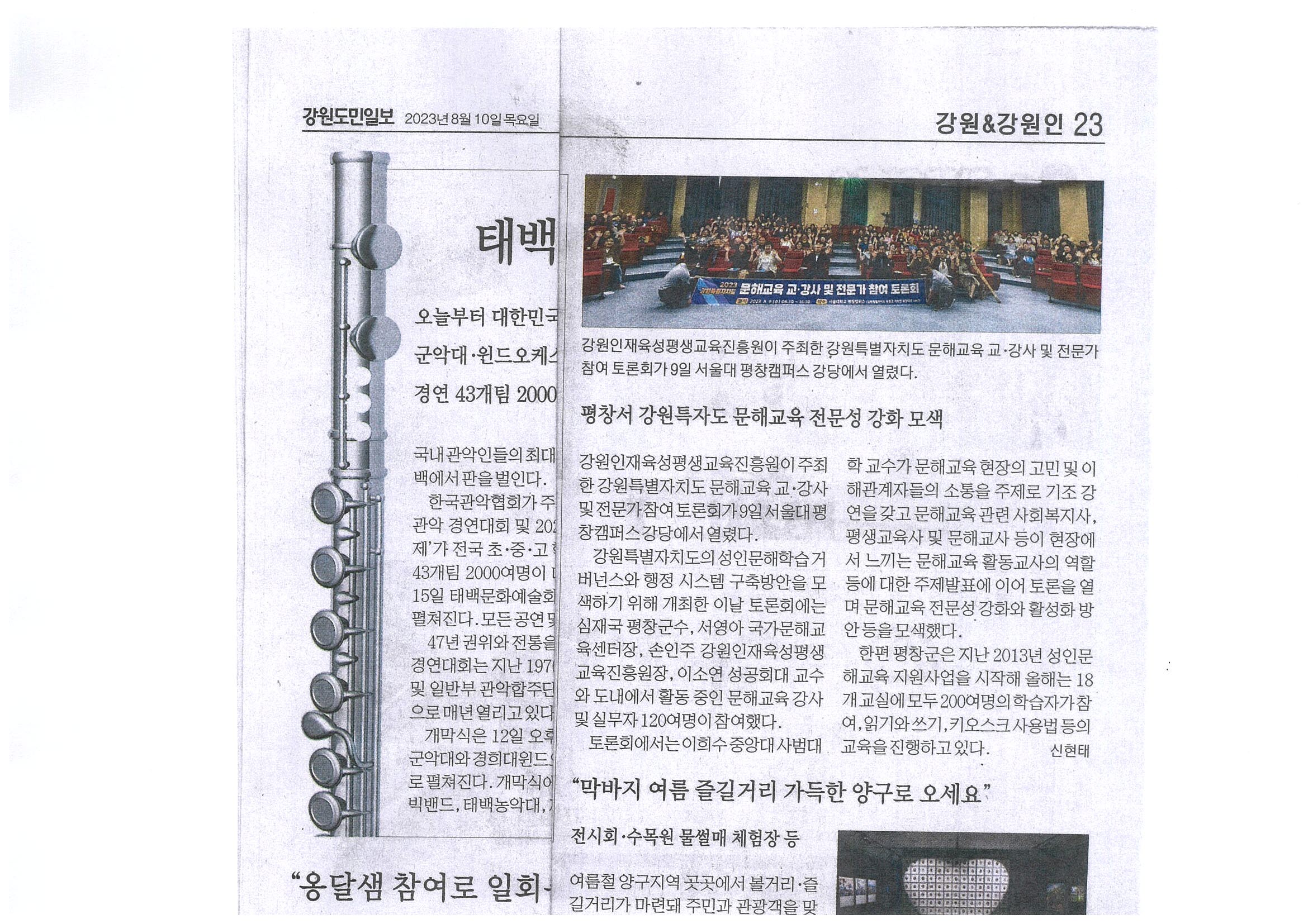 [2023. 8. 9.(수) 강원일보, 위클리오늘] 평창군, 2023 강원자치도 문해교육 전문가 참여 토론회