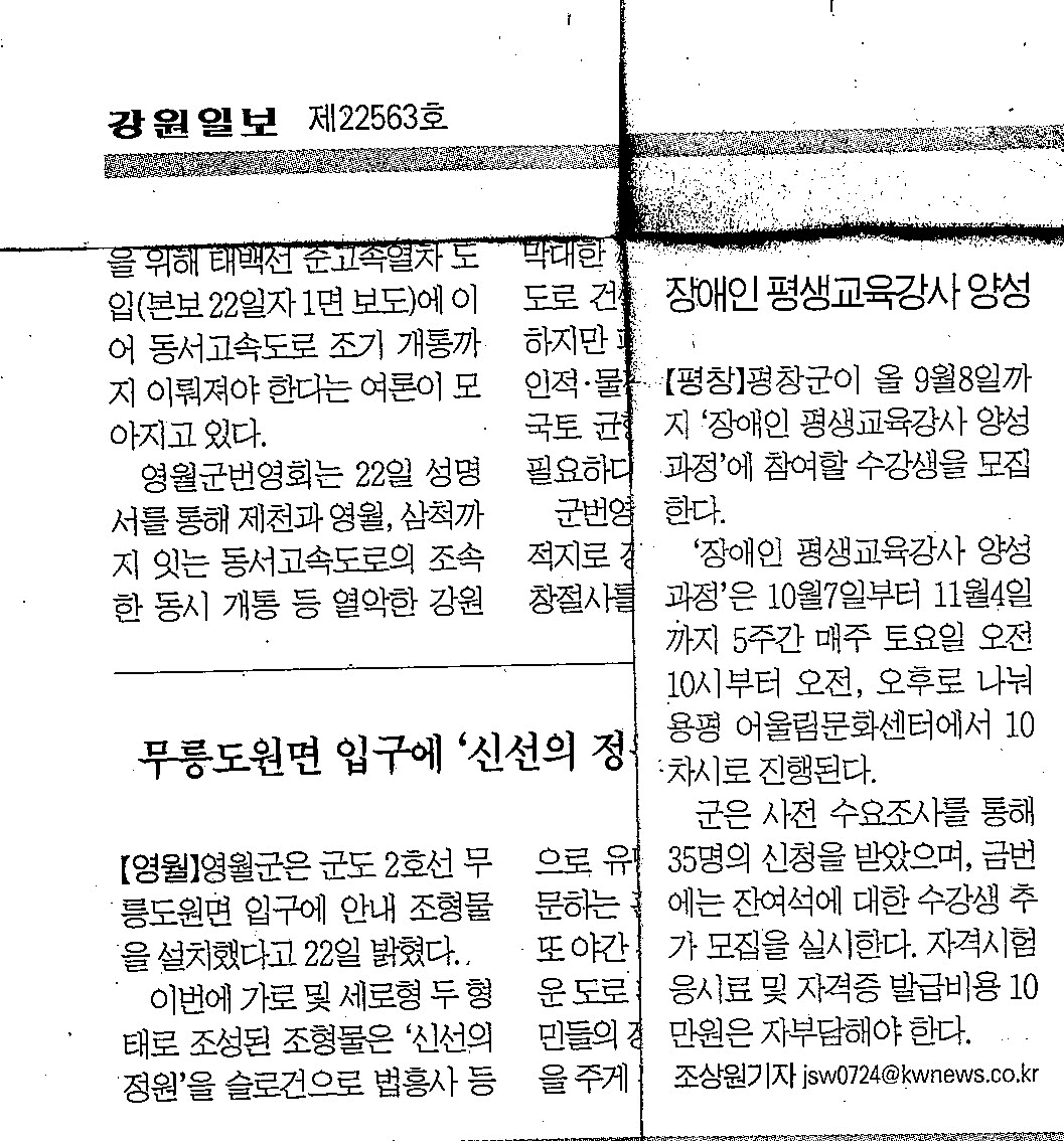 2023. 8. 23.(수) 강원일보 "장애인 평생교육강사 양성"