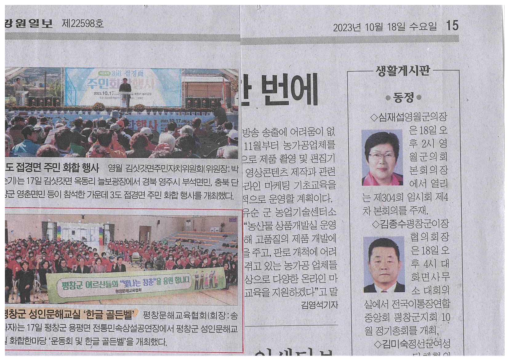[2023. 10. 18.(수) 강원일보-지면] 평창군 성인문해교실 '한글골든벨'