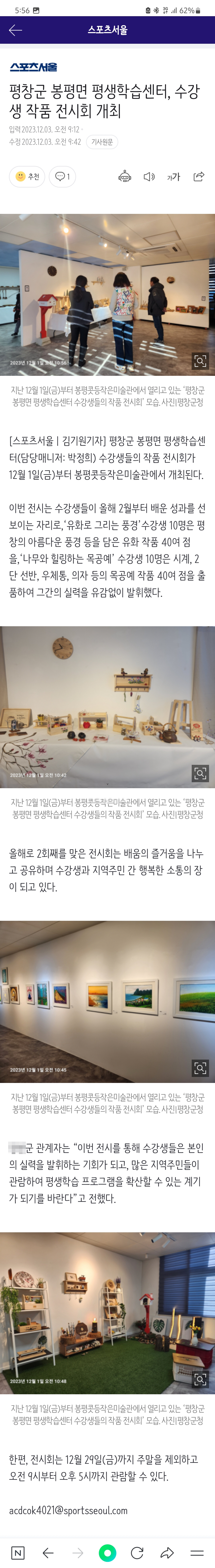 평창군 봉평면 평생학습센터, 수강생 작품 전시회 개최