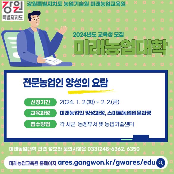 (미래농업인양성과정) 2024. 3. 11. ~ 5. 9.(2개월 / 3일 또는 4/ 합숙)