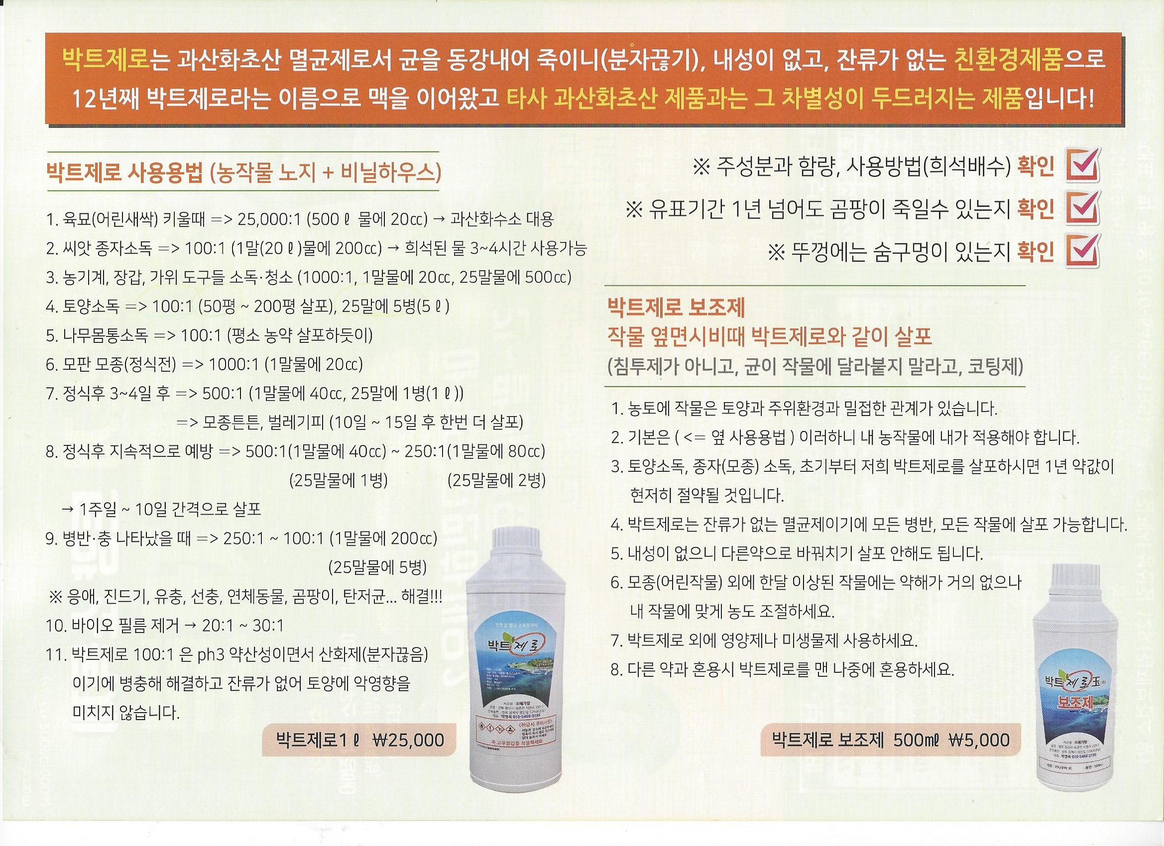 - 박트제로는 내성이 없고 잔류가 없습니다.