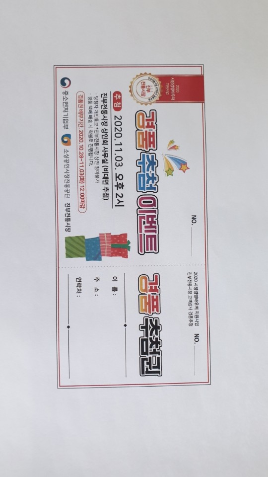 - 경품권배부/2020.10.28~11.03,12시까지 경품권 배부