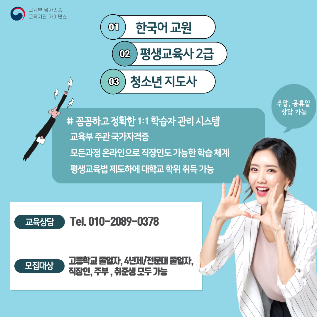 오늘부터 한국어교원, 평생교육사, 청소년 지도사 자격증 2021년도 2학기