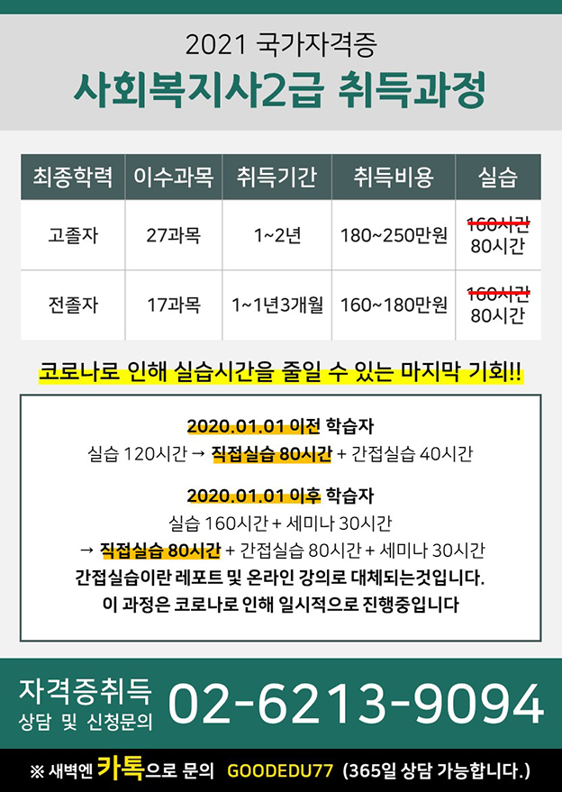 ★국가고시로 변경 전 사회복지사 2급 취득하자!★