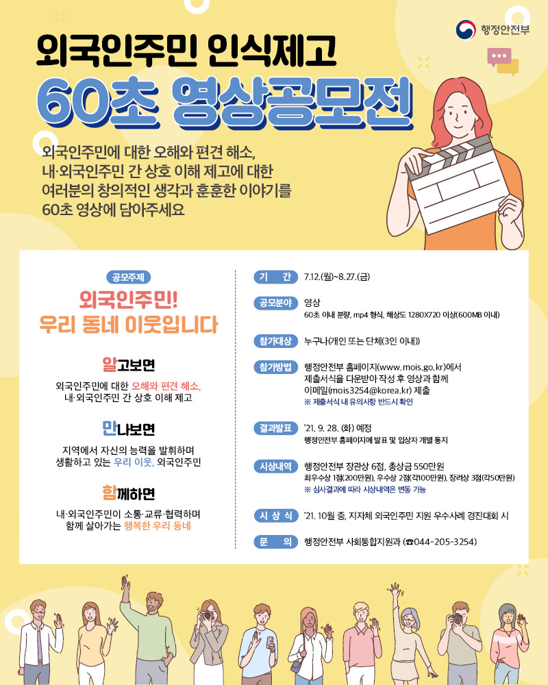 외국인주민 인식제고 60초 영상공모전 많은참여 부탁드립니다!