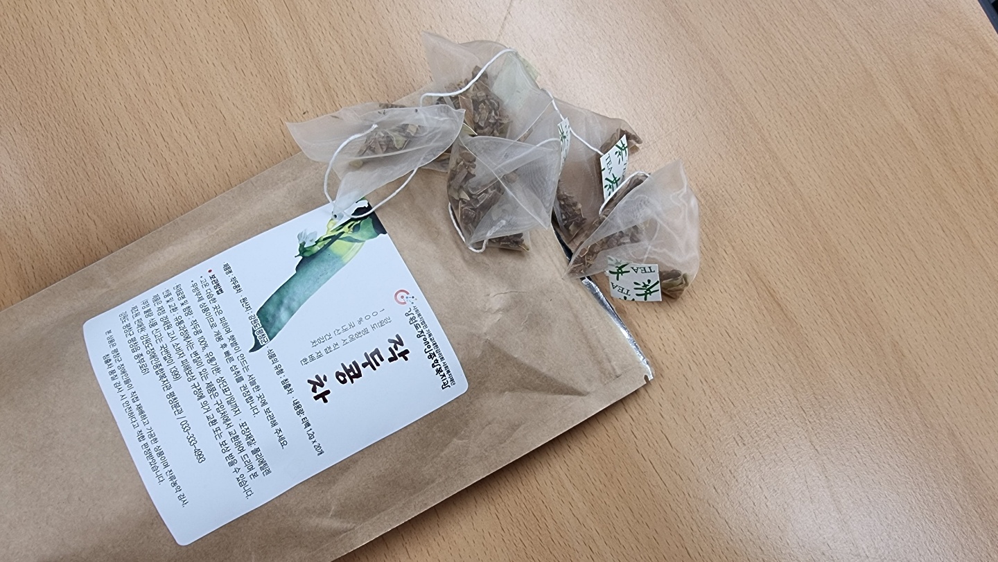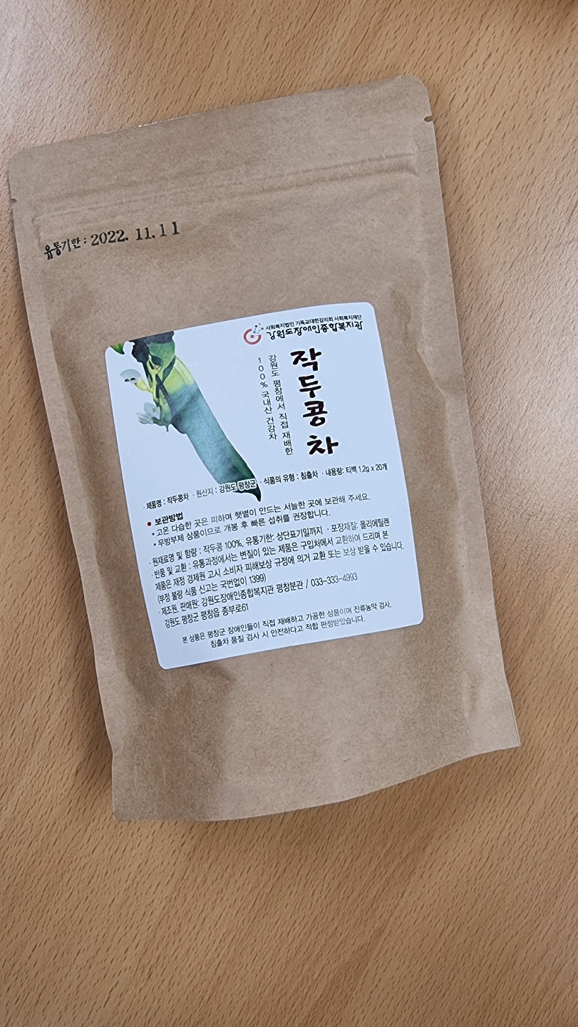 저희 복지관에서 진행하는 농업과 프로그램 이용자분들과 담당자가 열심히 직접!! 농사지어서 재배한 후 가공하여 만든 작두콩차를 판매하고 있습니다.