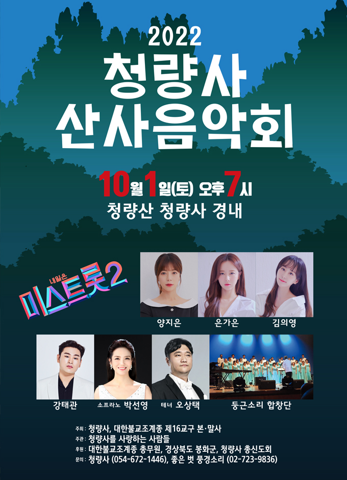 일정 확인하시고 청량사의 기운과 출연진들의 열정과 사랑을 듬뿍 담아 가시기 바랍니다.