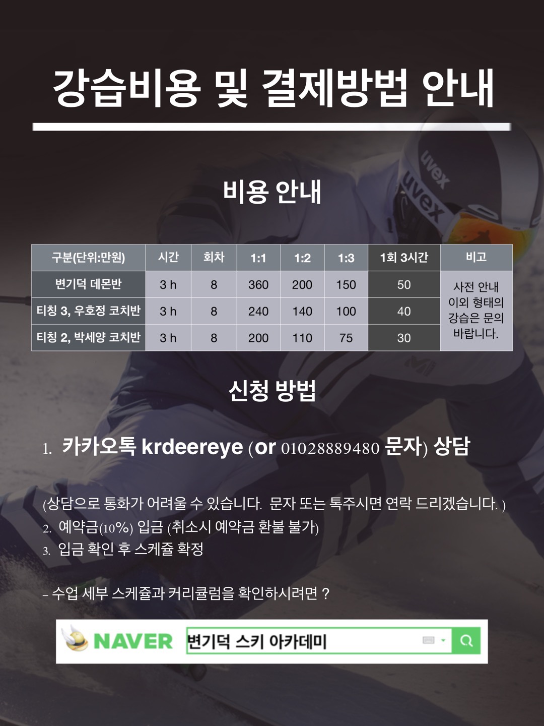 안녕하세요 변기덕 스키 아카데미입니다.